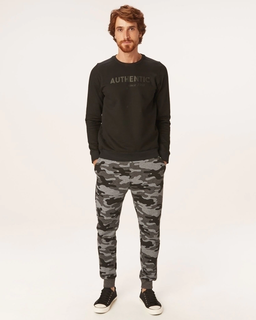 Blusão confeccionado em flanelado e malha relevo. Modelagem slim com caimento mais ajustado ao corpo. Manga longa e decote redondo. Possui punho e barra aplicados. Detalhe interno em cor contraste. Estampa frontal com inscrição "Authentic since 1968: Autêntico desde 1968" com efeito HD. Uma peça versátil que pode ser usada nos dias frios sem perder o estilo. Invista em sobreposição com uma camisa por baixo do blusão, calça chino e tênis slip on, para um visual casual e fashionista!