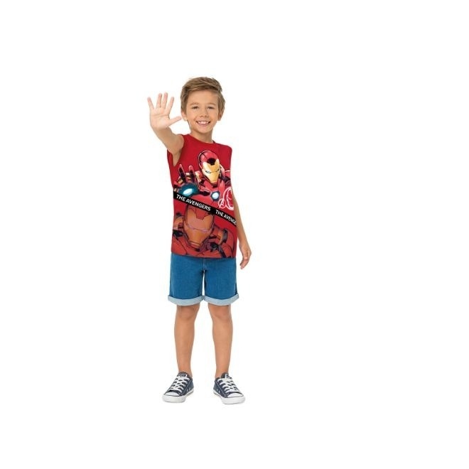 Regata confeccionada em meia malha de algodão, um tecido de bom caimento e ótima durabilidade. Modelagem tradicional, que acompanha as linhas do corpo com muito conforto. Modelo com decote redondo e alças médias. Estampa frontal The Avengers® com o personagem Capitão América, Hulk ou Homem de Ferro.