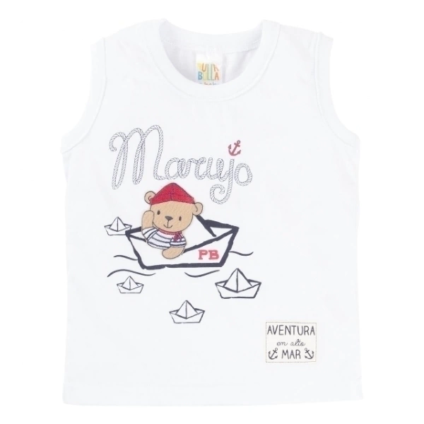 Para os meninos, a temporada de férias garante muita diversão e aventuras. Nada melhor que um conjunto Pulla Bulla para os acompanhar, não é? Conjunto com regata com estampa frontal e bermuda em moletom estampada