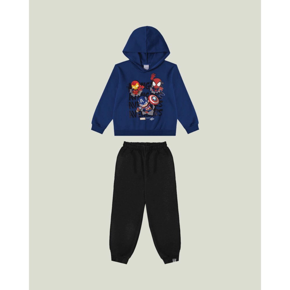 Conjunto confeccionado em moletom flanelado. Parte superior com capuz, mangas longas e estampa frontal dos personagens Avengers®. Parte inferior com cós elástico e barra ajustada. Um conjunto cheio de diversão e ideal para o dia a dia da sua pequena. Invista com tênis slip on!
