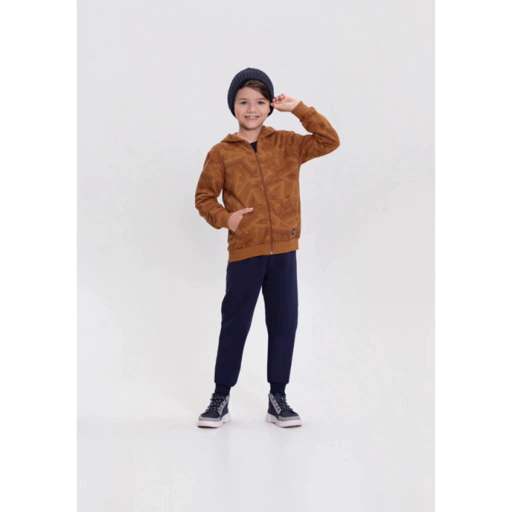 O Conjunto moletom alakazoo menino blusão e calça esta um arraso com um blusão manga longa, peluciado por dentro, fechamento em ziper, punhos nas mangas,Touca, estampa moderna e uma calça super confortavel, peluciada por dentro e punho.