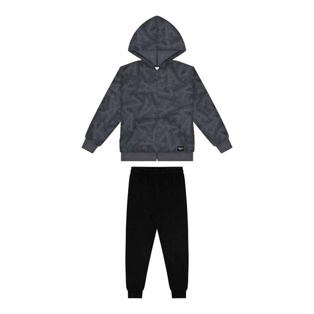 O Conjunto moletom alakazoo menino blusão e calça esta um arraso com um blusão manga longa, peluciado por dentro, fechamento em ziper, punhos nas mangas,Touca, estampa moderna e uma calça super confortavel, peluciada por dentro e punho.