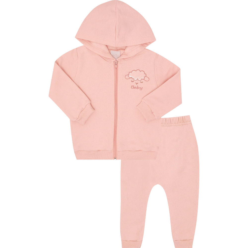 Conjunto em Moletom com capuz e fechamento em ziper. Detalhe em bordado de ovelha na frente da peça e a calça tem um bordado de ovelha na parte de tras da peça.