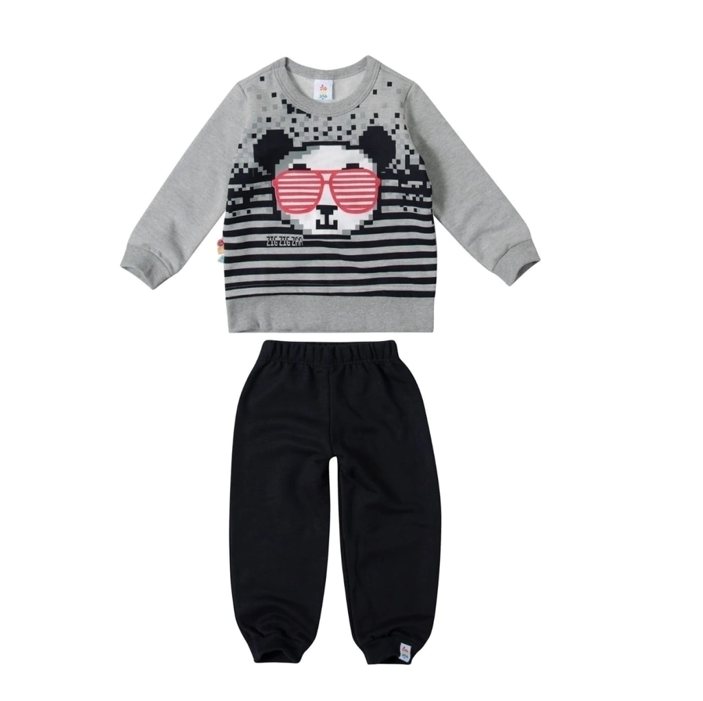 Conjunto de blusão e calça jogging confeccionados em moletom flanelado. Peça superior possui estampa frontal com efeito perolado, que proporciona um brilho diferente a peça. Peça inferior com cós elástico e barra aplicada. Aposte com tênis branco!