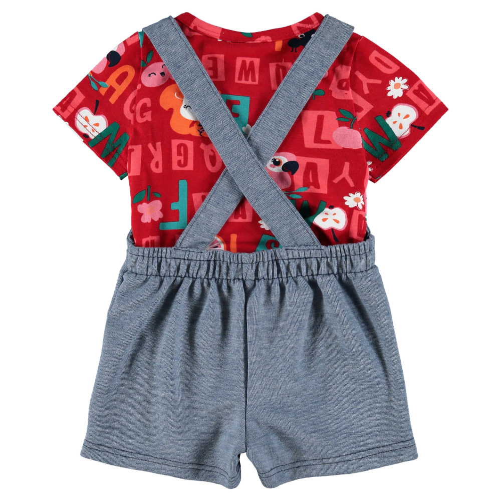 Conjunto infantil confeccionado em cotton light e moletinho rajado sustentável. Parte superior conta com decote redondo e mangas curtas com abertura no ombro e fechamento por botão de pressão e estampa corrida de letrinhas e demais desenhos. Parte inferior ao estilo jardineira, com alças duplas, botões frontais e cintura marcada. Com estampa frontal de esquilinho com aplique. As peças da Malwee Kids são essenciais para acompanhar o crescimento das crianças, são itens práticos e duráveis além de terem a melhor qualidade do mercado brasileiro. Um conjunto estiloso e comfy para a sua pequena.