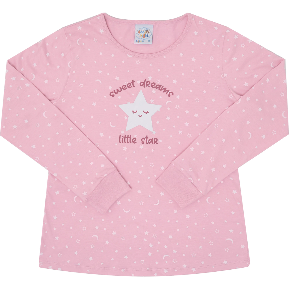 Pijama Feminino Infantil Malha Good Nigth By Pulla Bulla, Blusa manga longa com punhos, gola redonda, estampa de estrela frontal "Doces sonhos/Pequena estrela". Calça cotton leve. Sinta o conforto e maciez do mais puro algodão. * Acessórios não acompanham o produto!*