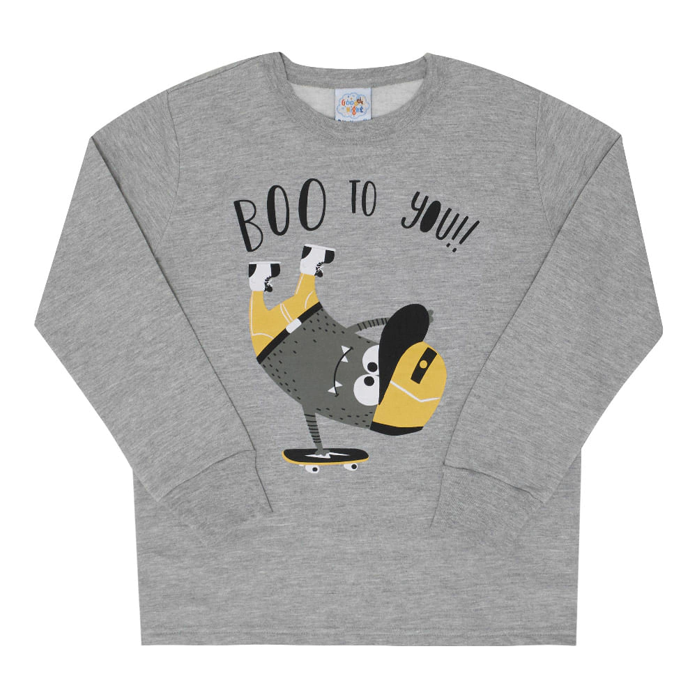Blusão em moletinho com punhos nas mangas com estampa inscrito" Vaia pra você" e calça em moletinho com punho.