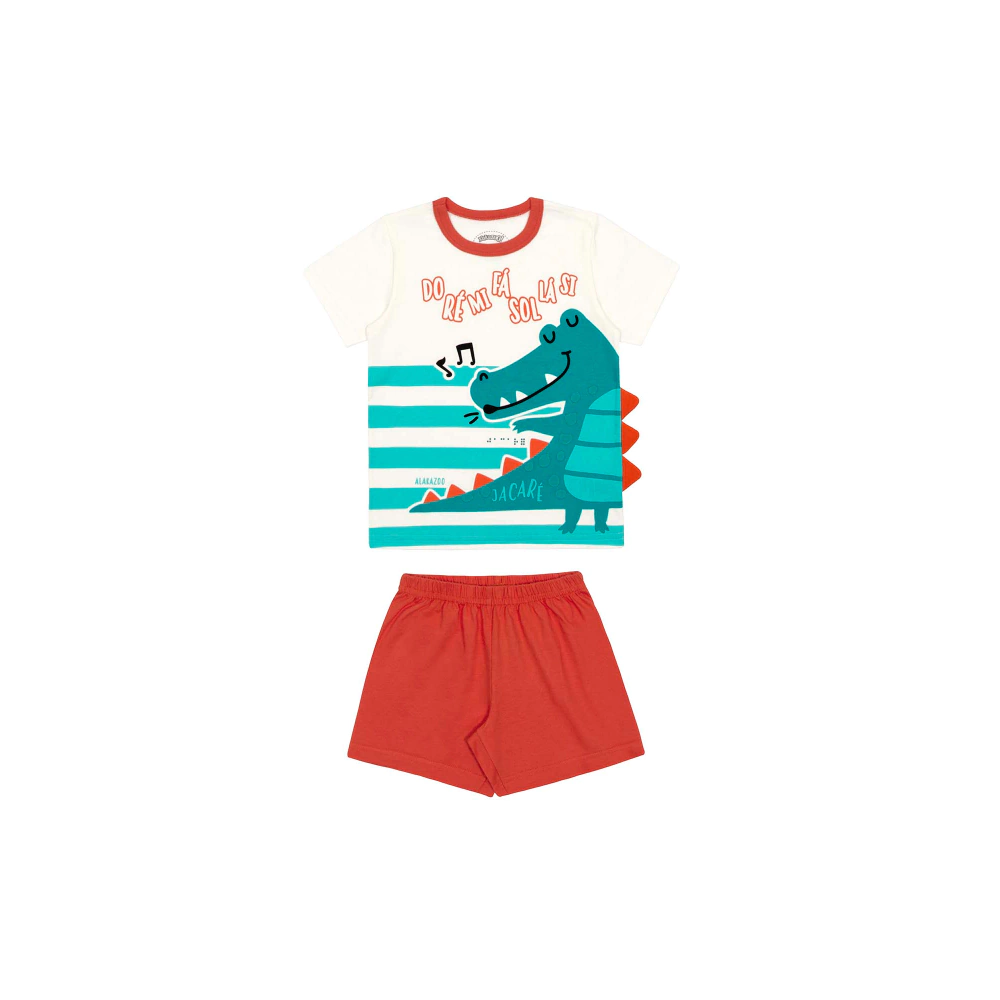 O pijama é composto por uma camiseta de manga curta e bermuda, com uma estampa interativa que brilha no escuro. Durante o dia, a estampa apresenta temas lúdicos e inclusivos que capturam a imaginação das crianças. Quando a luz é apagada, a estampa ganha um efeito mágico, com elementos que brilham suavemente no escuro, criando um ambiente noturno encantador e estimulante para a criança, tornando a hora de dormir mais divertida e intrigante. O pijama é feito de algodão responsável, proveniente de fontes sustentáveis. O algodão é suave, respirável e ideal para a pele sensível das crianças, garantindo conforto durante a noite.